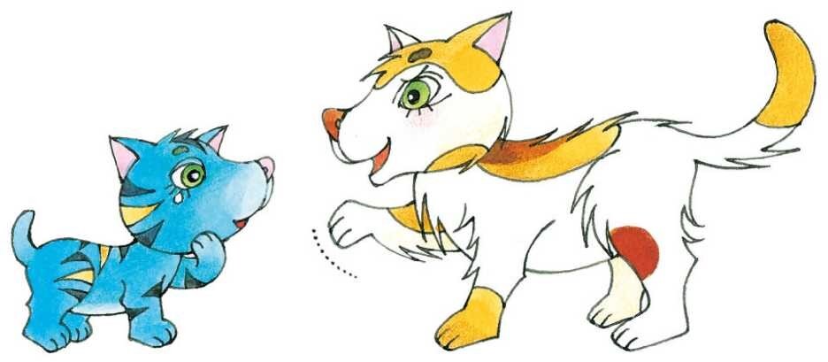 „Ach ne,“ plakalo koťátko. „Koťátko takhle o jídlo neprosí.“ A šlo smutně dál, až potkalo krávu. ,,Proč pláčeš, koťátko?“ ptala se kráva.